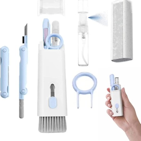 MULTI-FUNCTIONAL CLEANING KIT: This 7-in-1 electronic cleaner kit includes 1 large high-density brush, 1 soft sponge, 1 cleaning pen for airpods(includes silicone tip, small sponge and mini high-density brush), 1 Keycap Puller, 1 flannel cleaning cloth and 1 spray bottle (5ml Screens Cleaners Spray) for every cleaning need.(Give Away a 14*17cm Flannel Cloth)