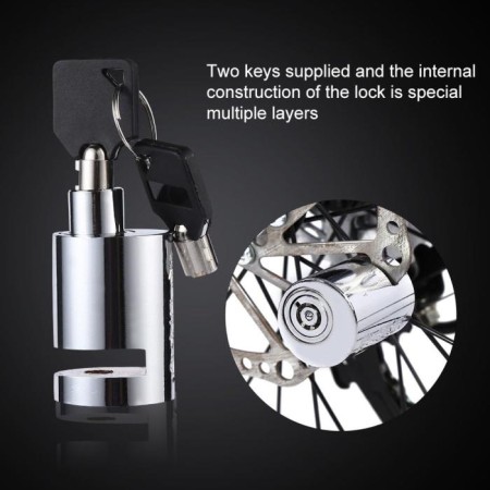 This AUTOGUYS Anti-theft Disc Lock has a Unique Design that Comes with a Press operation, it can be simply pushed without the key to lock into the disc brake for more secure and reliable locking, and then can keep your belongings safe.